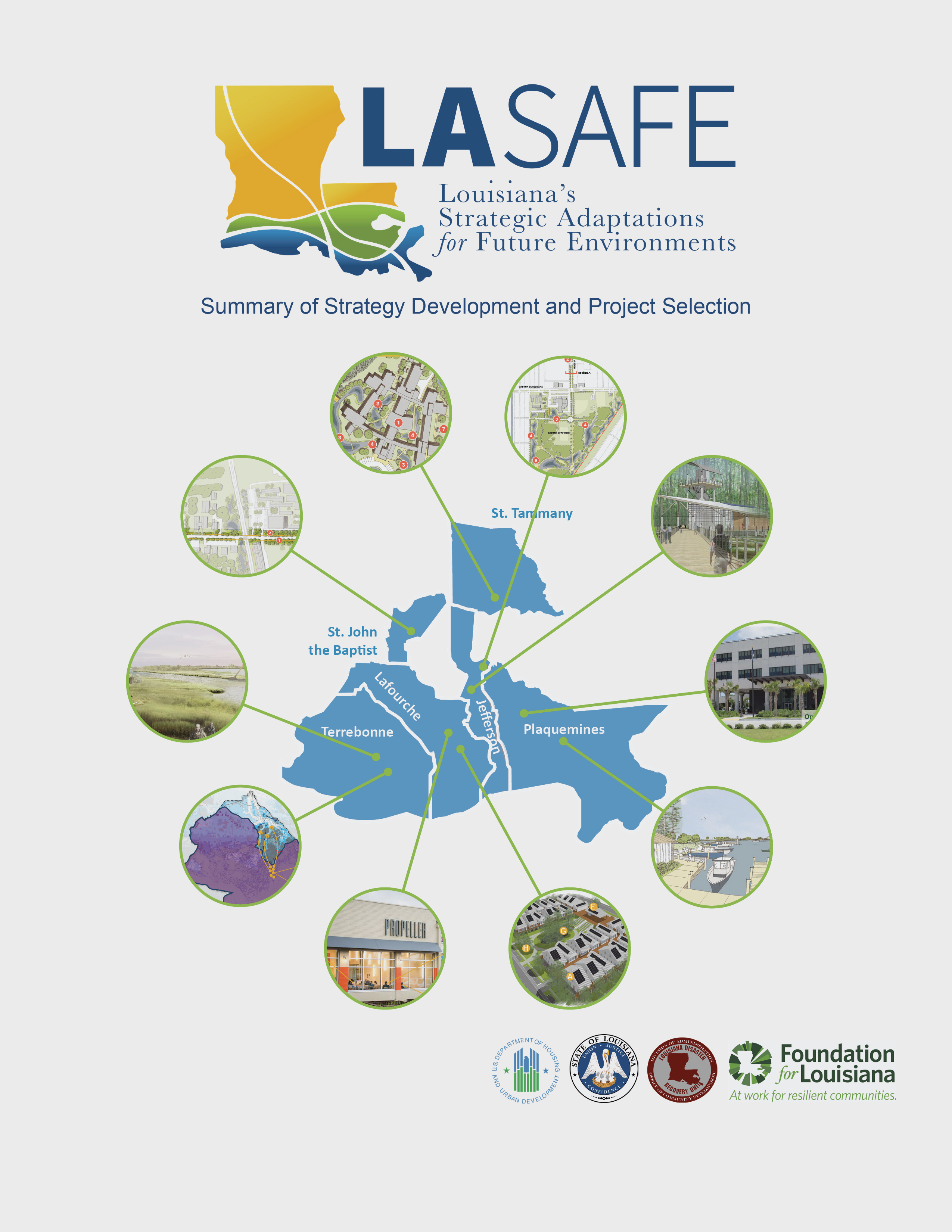 Louisiana’s Strategic Adaptations for Future Environments (LA SAFE) provides a holistic approach to flood risk of all types as well as the myriad of human, economic, and environmental impacts experienced following past floods and those anticipated in the future. To develop aspirational—yet realistic—visions of tomorrow’s communities, LA SAFE led a grassroots effort across six-parishes to gather information and ideas while harnessing the experience and ingenuity of local citizens. It includes an extensive planning process of more than 70 outreach and engagement events, more than $41 million in project investments designed by residents and stakeholders, and seven strategy documents highlighting takeaways and recommended actions.